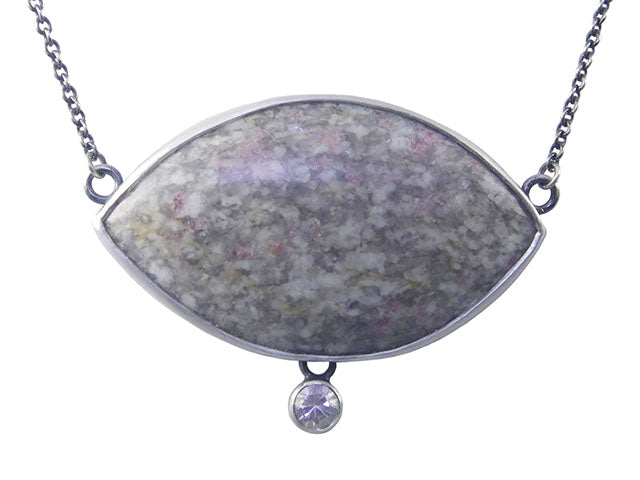This one-of-a-kind necklace features a gorgeous rubellite (pink tourmaline) in matrix from Maine, paired with a stunning blue-pink Maine tourmaline gem.