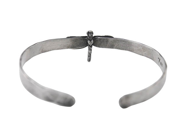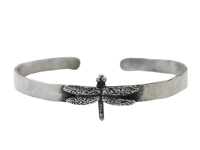 This Green Darner Dragonfly cuff bracelet is handcrafted in oxidized recycled sterling silver. The underside of the dragonfly bears a small heart that touches your wrist as you wear this cuff. This cuff is size medium.